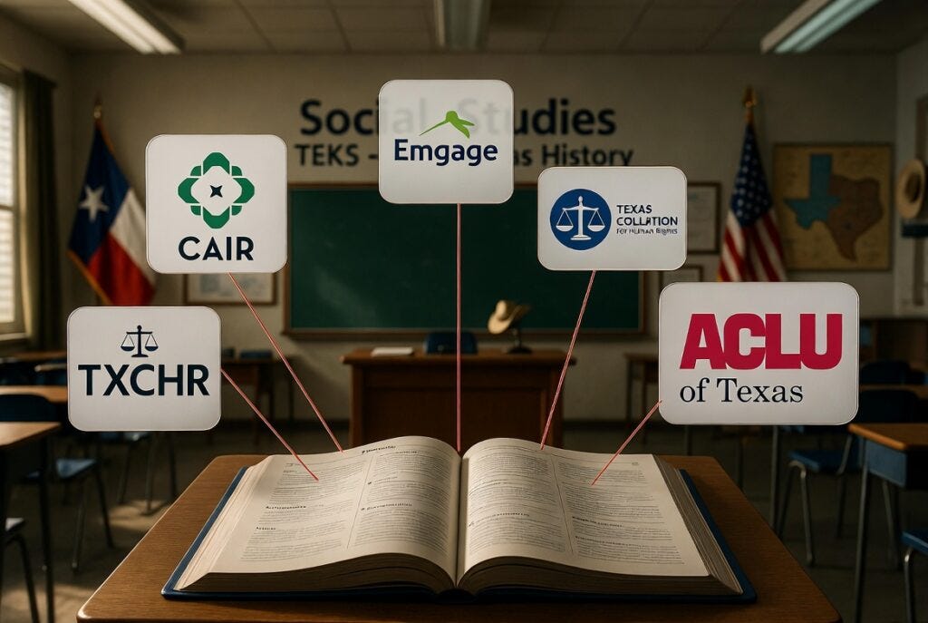 Since the fall of 2025, radical far-left and Islamic groups have been activating their base with laser-focused precision to hijack school curricula. While conservatives slept on school board races and curriculum committees, outfits like Texas AFT, Texas Rising Action, Emgage, Asian Texans for Justice, and their Red-Green allies flooded SBOE hearings demanding more DEI grievance narratives, anti-ICE propaganda, transgenderism, and Islamic contributions, dressed up as “inclusivity.” This is not education — it is indoctrination by design.