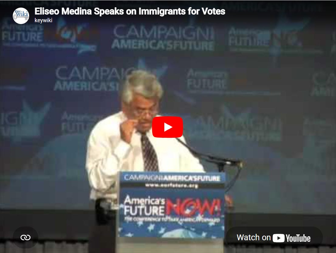 Eliseo Medina, a protégé of the disgraced César Chávez and close Obama ally, let the cat out of the bag on June 2, 2009. Then-SEIU International Executive Vice President, Eliseo Medina spoke of “reforming” immigration laws so that illegal aliens can vote for Democrats. He said:
