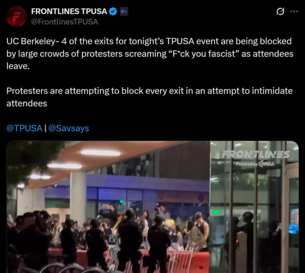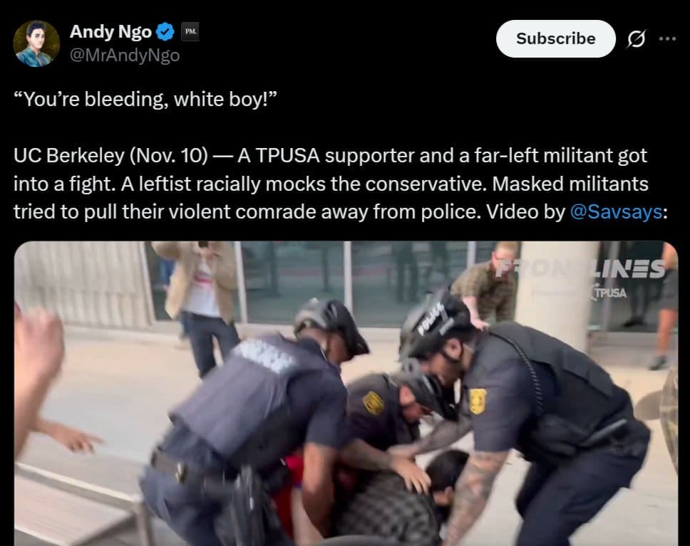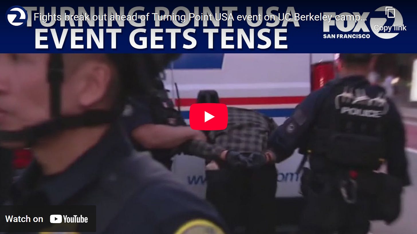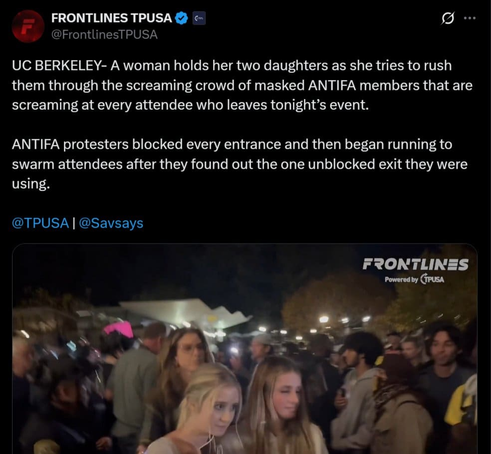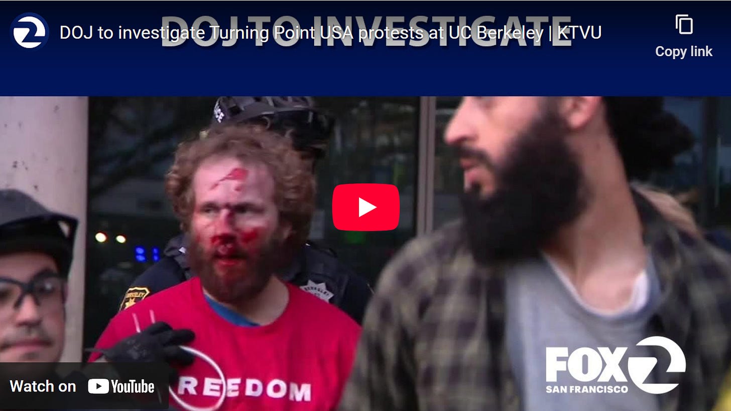 Violence predictably erupted at the final stop of TPUSA’s tour, the University of California-Berkeley, after Charlie Kirk’s assassination in September. Hundreds of leftists showed up and attacked conservatives and police officers. One reporter stated that there was “blood spattered” on the pavement.